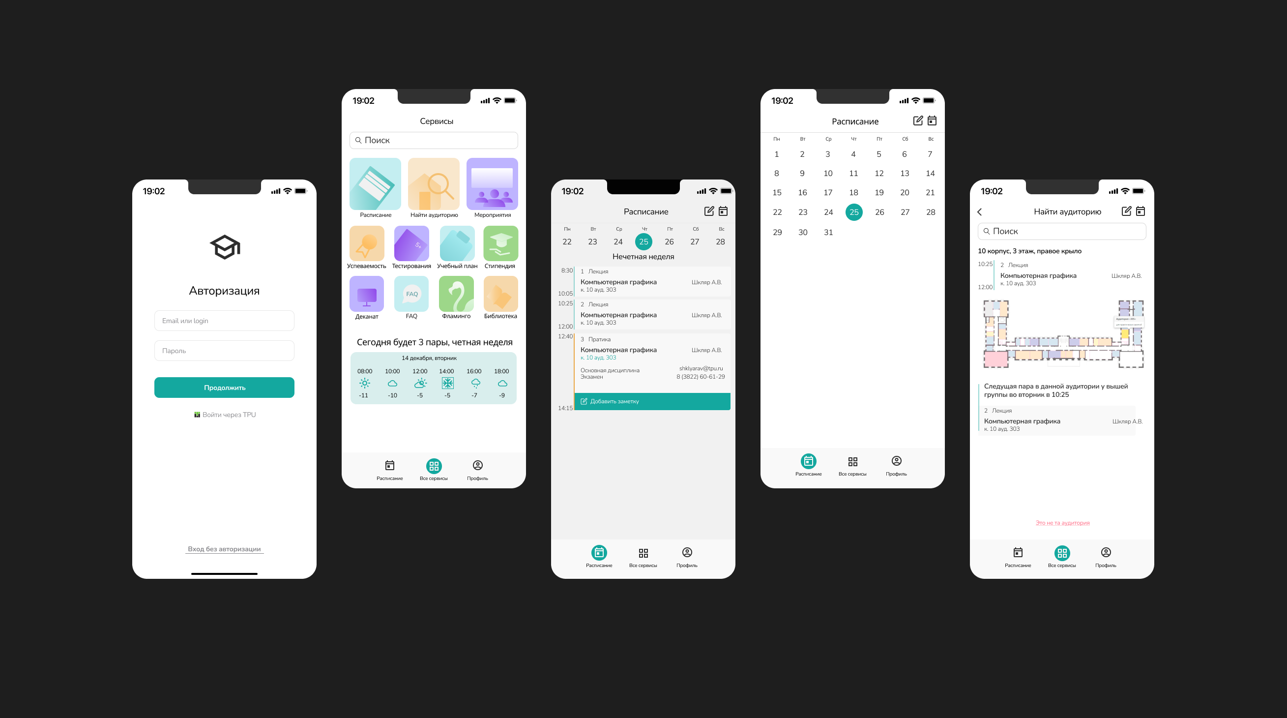 Создания дизайна мобильного приложения с тремя сервисами – улучшенным расписанием, сервисом для поиска аудитории и сервисом для участников культмассовых мероприятий.